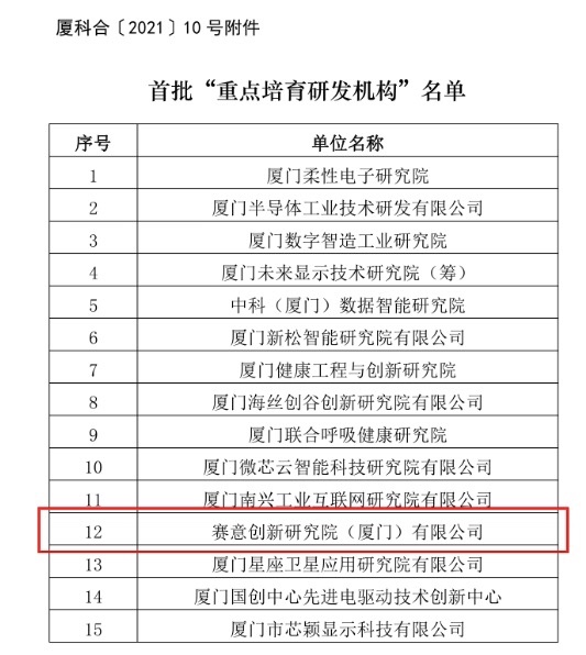 A few days ago, the Science and Technology Bureau of SIE issued the List of the First Batch of "Key Research and Development Institutions", and SIE Innovation Institute (Xiamen) Co., Ltd. was successfully selected.